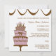 These cute cake invitations are great for Birthday parties, sweet sixteen invitations and bridal shower invites, and feature a cute tiered cake in pink and brown with candles on top. Ready to personalise.