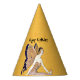 This paper party hat is a bright yellow with a pretty blonde fairy with monarch butterfly wings. Customise the Happy Birthday text with the template.