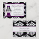 Stylish custom bakery business card done with a black and white damask frame and pretty plum purple accents. Graphics of a lovely black and white wedding cake sitting on an up turned purple flower pot, decorates the front of the card. Perfect for a bakery shop, party shop, or an independent custom baker. Customise the text fields to personalise for yourself or your shop.