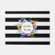 Beautiful doormat with floral watercolor wreath on black & white striped background. Customise the text by choosing from many wonderful fonts.