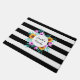 Pretty Black & White Stripes Floral Wreath Text Doormat
