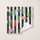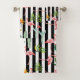 Pretty Black White Stripes with Flamingo Cactus Bath Towel Set