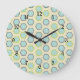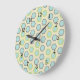 Pretty Blue and Lime Green Hexagon Tile Pattern Large Clock