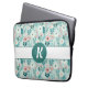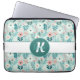 Personalised Laptop Sleeve. Pretty pink and blue floral pattern folk art flowers.