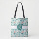 Personalised tote bag. Pretty pink and blue floral pattern folk art flowers.