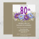 Pretty Blue and Purple Peony 80th Birthday Invitation