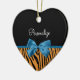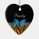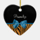 Pretty Blue Bow Stylish Tiger Stripes and Name Ceramic Tree Decoration