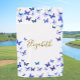 This pretty blue butterflies personalised ladies golf towel has a gold editable name for the lady golfer in your life. Give one to your mum, sister, or anyone else who you want to give a little present that relates to their hobby, or get one for yourself. Cute and useful, too!