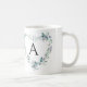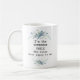 A pretty feminine decorative personalised mug, featuring blue watercolour floral bouquets and a funny quote about the youngest child,© Julie McIver