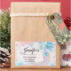 Business stickers with beautiful blue flowers on a pink background. An image of a rectangle shaped notebook page layered over top for you to write your text inside.