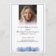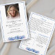 A beautiful and elegant two sided funeral program adorned with pretty summer flowers - blue hydrangea flowers.
