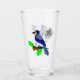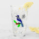 A pretty blue jay bird on an oak branch. The bird image is from the back with a focus on the blue tail feather. The design has the bird looking to the left, a mirror image of the bird is done in the upper right a grayscale watermark, an ideal location for a monogram.