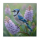 Pretty Blue Jay Standing on Lilac Branches Ceramic Tile