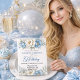 The classic blue and ivory color palette offers a fresh, romantic feel that works beautifully for spring and summer celebrations, garden parties, brunches, evening dinners, or formal birthday gatherings. The botanical artwork adds a touch of vintage charm while maintaining a modern, upscale aesthetic.