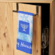 Lovely menorah graphic with "HAPPY HANUKKAH" in script lettering. Pretty in any kitchen!