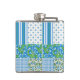 Pretty Blue Morning Glory Faux Patchwork Hip Flask