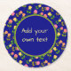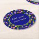 Pretty Blue Rose Pattern Custom Text Round Paper Coaster