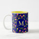 Pretty Blue Rose Pattern Monogram Two-Tone Coffee Mug