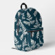 Pretty Blue & White Fern Pattern Monogram Initials Printed Backpack