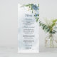 beautiful blue and white flowers and green leaves romantic wedding menu.