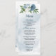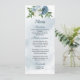 beautiful blue and white flowers and green leaves romantic wedding menu.