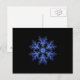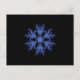 A fractal kaleidoscope snowflake in blue on a black back ground looks pretty on a post card.