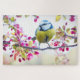 A puzzle with an amazing photograph of the cutest little bird perched on a branch covered in pink blossoms and green leaves. The bird has a blue head and yellow body with a very sweet face. Adorable.