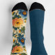 Pretty blue yellow patterns odd mix matched socks. Fun mix matching socks.