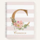 Pretty Blush Floral Gold Foil Letter C Monogram Notebook