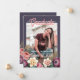 Unique and trendy congratulations graduate announcement and celebration party invitation card framed with a beautiful colourful watercolor spring and summer floral wreath on a classic dark mauve taupe coloured background. With room to customise or personalise with a photo, the name of the graduate, class graduation year, high school, future college or university name, and celebration party event information. Let the family, friends and neighbours know there is a happy graduate ready to conquer the world, and invite everybody to come celebrate the happy event with you!