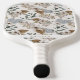 This pretty, stylish pickleball paddle features a boho pattern of tropical flowers and leaves in ivory, copper, gold, grey blue, and teal green over a custom colour background (shown in off white). A text template is included for personalisation!
