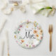 Pretty Boho Orange Pink Watercolor Wildflowers Paper Plate