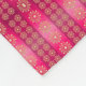 Pretty fleece blanket features tiled Bohemian style pattern in shades of pink with floral icons