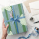 Pretty botanical and stripes pattern Blue Green Wrapping Paper