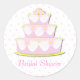 Pretty bridal shower envelope seal, with a fun white with pink polka dot background and graphics of a pink wedding cake. Text reads Bridal Shower and is customisable to read anything you want. Great accent and finishing touch to the matching bridal shower invitations, see links below for matching products.