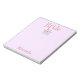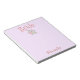 Pretty bride personalised note pad features a lovely pastel pink background, with "Bride" written across the front. Directly under the "Bride" is a pink and blue bouquet of flowers. At the bottom is a place to customise your name. Place your order today!