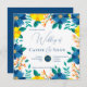 Pretty Bright Blue Yellow Floral Romantic Wedding Invitation