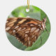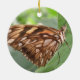 This pretty pendant style ornament features a photograph of a beautiful tropical butterfly. It has pretty brown wings covered in spots of orange, white and tan. The photograph was taken using macro photography for a stunningly detailed result.