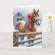 Pretty Brown Horse with Bow And Barn Christmas Card