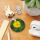 This key chain features a single shiny, cheerful, yellow buttercup, Ranunculus, flower against a summery green background. Symbolically the buttercup is often associated with cheerfulness, charm, childishness and riches.