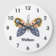 A pretty boho style dark blue and mustard yellow butterfly with multi colour circles and floats gracefully away. Easy to read large black numbers, personalise with any name.