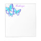 This design features a butterfly trio in shades of purple and blue on a white background. The background colour can be changed by clicking Customise It, Edit and Background. Easily customise this design with a name or other text.