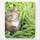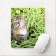 A gorgeous Calico cat sits in a lush garden, gazing at the sky, printed on a Mousepad.