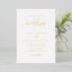 Invite guests to your wedding with this gold foil pressed wedding invitation. An elegant wedding invitation featuring calligraphy script and classic typography. This calligraphy wedding invitation is perfect for any wedding theme and season. Personalise this minimalist wedding invitation by adding your wedding details. This gold foil wedding invitation is available in other foil finishes.