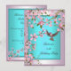 Pretty Cherry Blossom Teal Blue Pink Party 2 Invitation