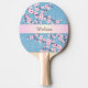 Pretty Cherry Blossoms Blue Glitter Monogram Ping Pong Paddle