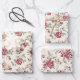 Pretty Chic Red Cream Floral Birthday Wrapping Paper Sheet