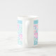 A very pretty Bone China Coffee Mug, with a pattern of pink roses on a sky blue background, dotted with white butterflies You can add text to the plain band at the top or just leave it plain.