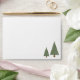 Pretty Christmas envelopes with green pine tree drawing on the back and front. Pretty inside liner pattern envelopes for Holiday party invites, greeting cards, events, party and more. Personalised greetings like Merry Christmas or Happy Holidays. Include your return address. Elegant script typography template. Nature inspired design.