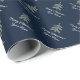 Pretty Christmas tree pattern personalised Holiday Wrapping Paper. Custom gift wrap rolls with your greeting and name. Navy blue or custom background colour. Elegant x-mas design for presents and party favours. Suitable for kids and adults.